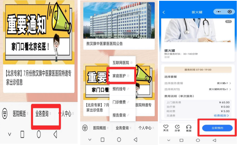 第一步:微信关注“敖汉旗中医蒙医医院”公众号后点击“业务查询”